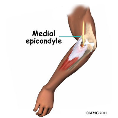 The other method simply on the inside edge of the elbow, a procedure called medial epicondylectomy. By getting the medial epicondyle out of the way, the ulnar nerve can then slide through the cubital tunnel without pressure from the bony bump.